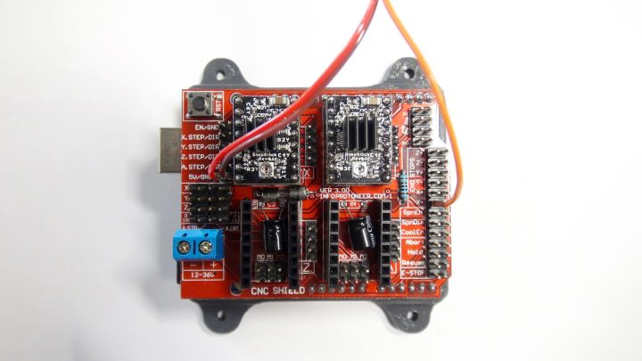 Sur la carte CNC Shield, branchez chaque fil du servo comme indiqué sur l'illustration ci-dessous et en suivant ces annotations :